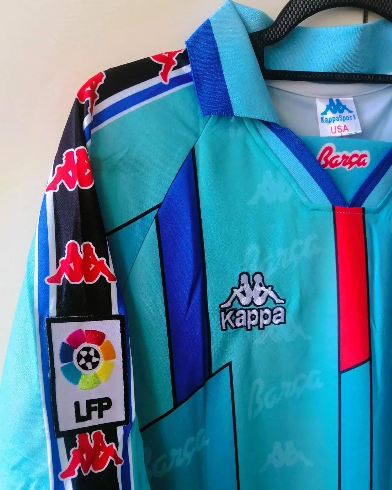 Make football history with the 1996-97 Barcelona jersey featuring RONALDO's number 9. Enriched by the La Liga patch, it is further enhanced by the personalisation of the young phenomenon and future world football star