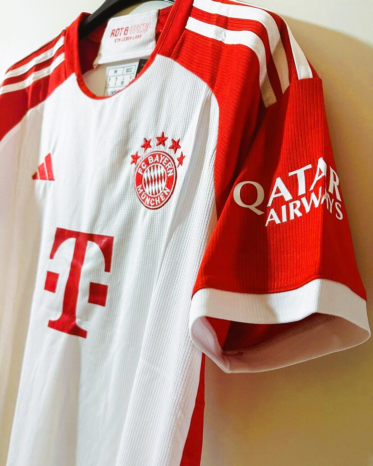 Bayern Munich's 2023-24 season shirt with HARRY KANE's number 9 represents the perfect fusion of strength and talent. Enriched with the BundesLa Liga patch, it testifies to the English bomber's arrival in Germany and further raises the prestige of the Bavarian club