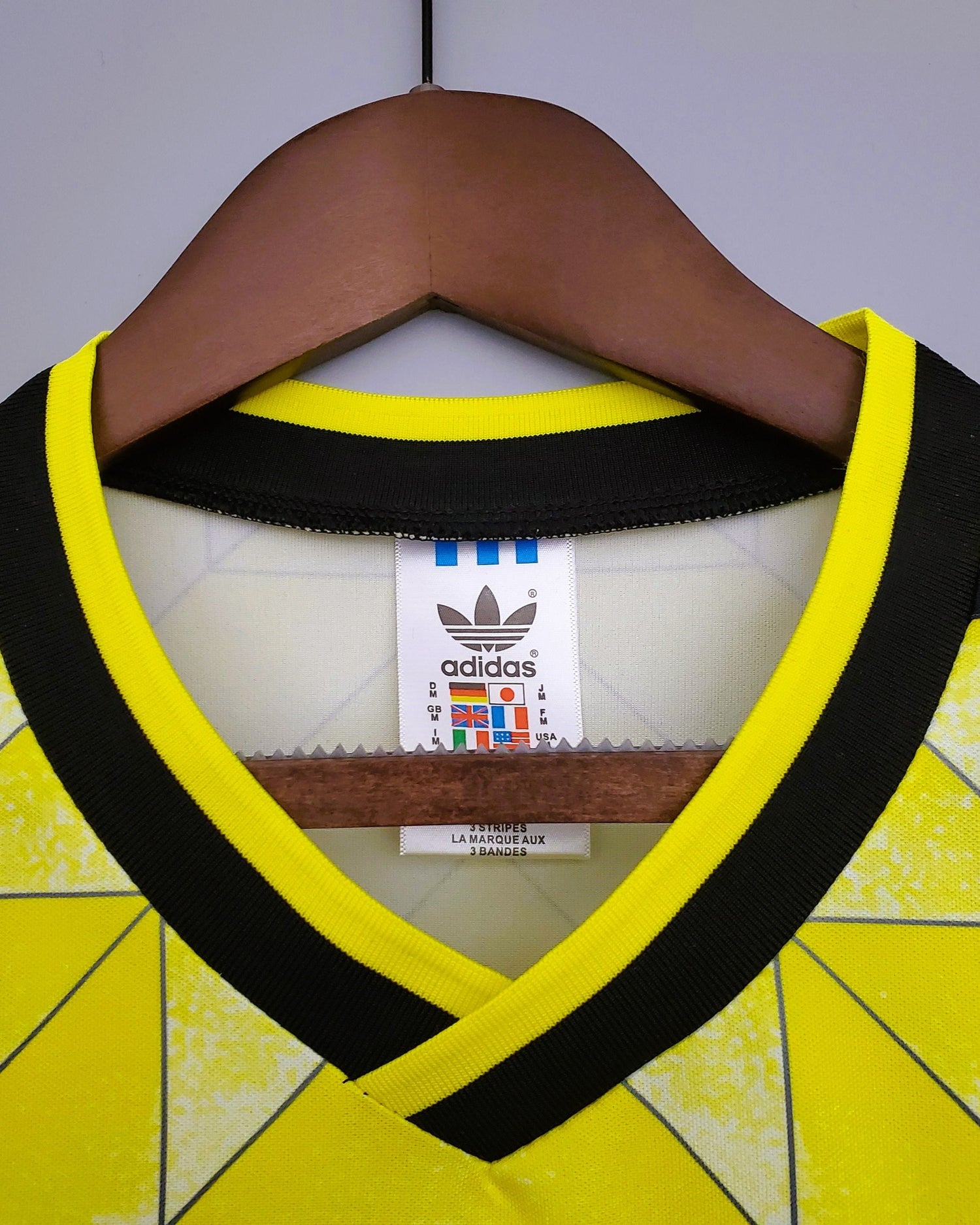 Una delle maglie più belle del mondo per una delle squadre più iconiche in assoluto creano questo gioiello del Borussia Dortmund nella stagione 1988-89. Con il numero 10 di ANDREAS MOLLER, questo capolavoro realizzato con il leggendario design geometrico anni '80 assolutamente attuale e moderno, ripercorre la storia e le gesta del talentuosissimo giocatore tedesco
