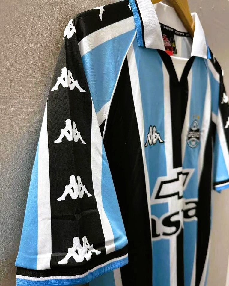 La maglia del Gremio per la stagione 2000-01, indossata con il numero 10 da un giovanissimo RONALDINHO, è un autentico capolavoro di design che incarna l'essenza del talento cristallino. Realizzata magistralmente, rappresenta l'inizio di una luminosa carriera di un fuoriclasse assoluto che avrebbe fatto innamorare milioni di tifosi in tutto il mondo