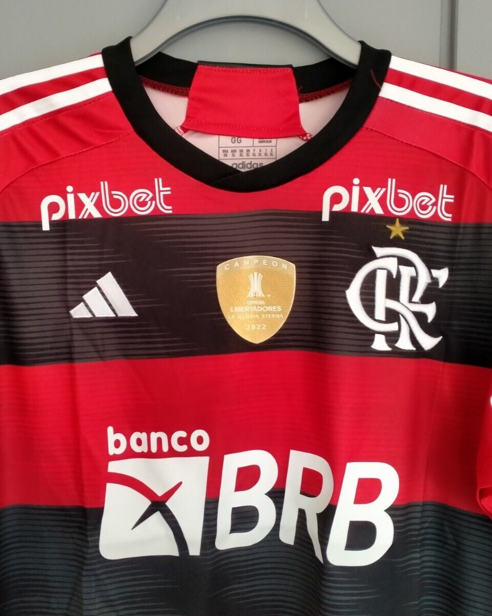 Una delle divise più belle del mondo per uno dei giocatori più iconici del Sud America: un matrimonio perfetto per questa maglia del Flamengo creata da Adidas nel 2023-24 con il numero 32 di ARTURO VIDAL. Un autentico gioiello rosso-nero, arricchito dalle patch della Libertadores, che testimoniano il predominio del club brasiliano guidato dal fenomenale e leggendario centrocampista cileno