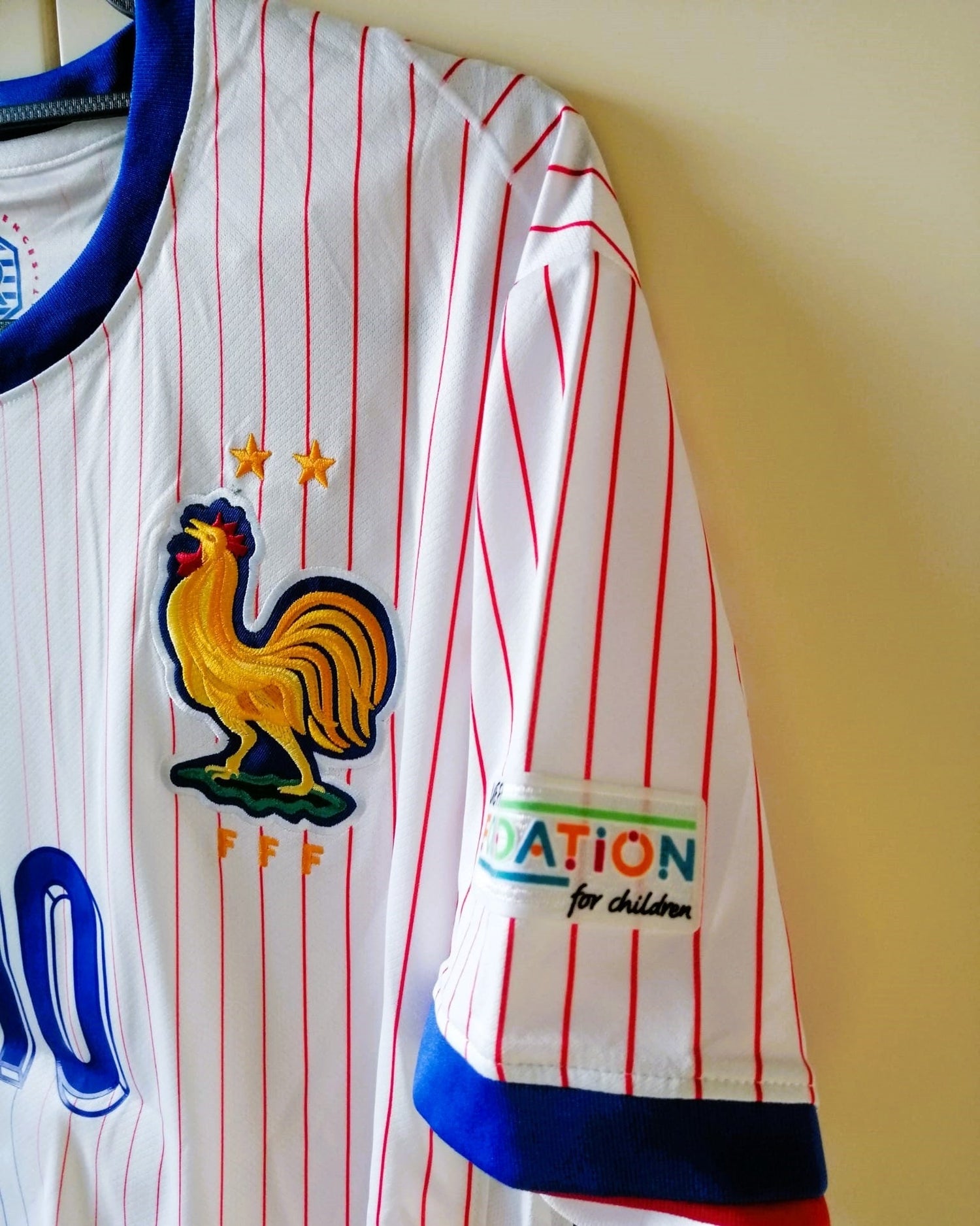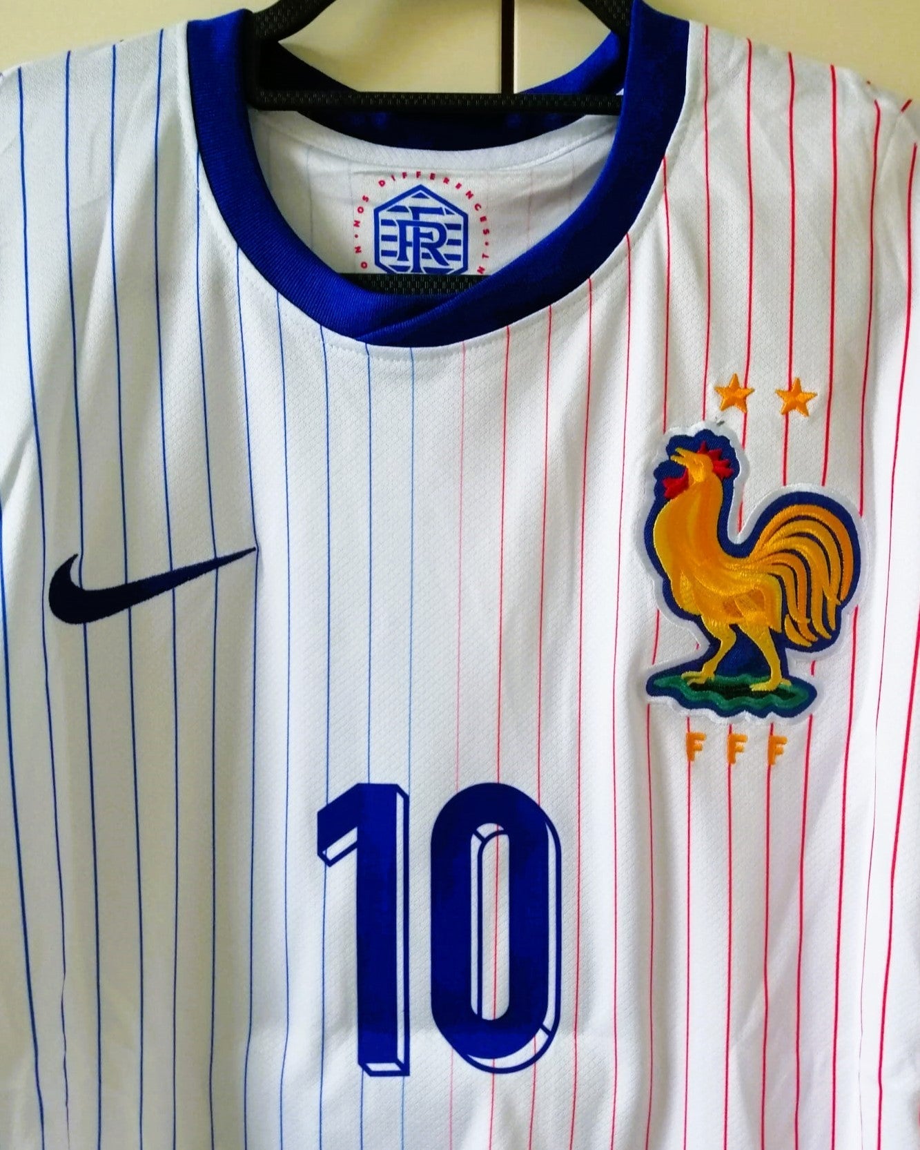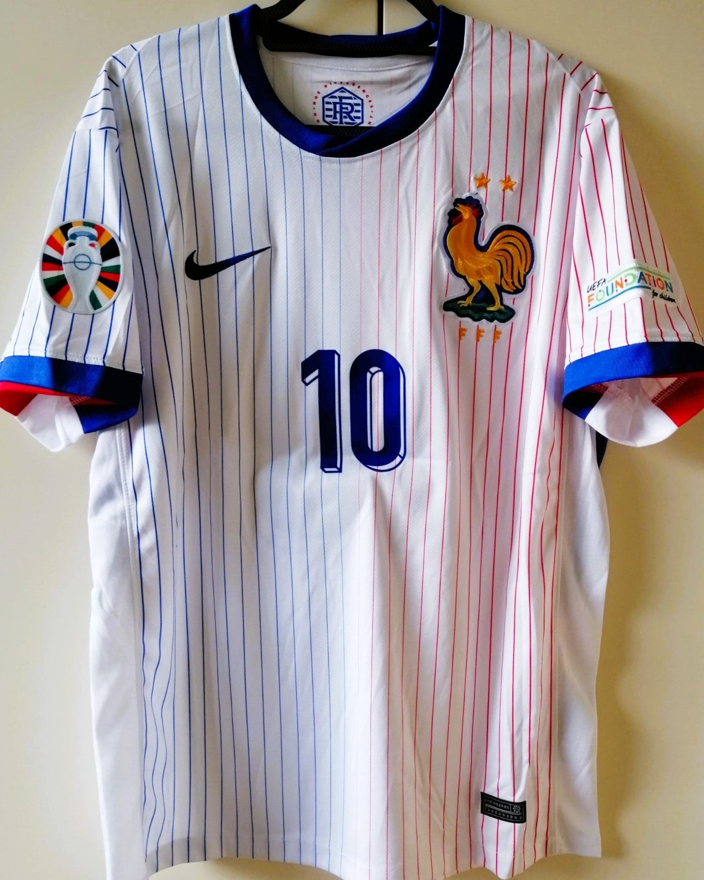 La maglia della Francia della stagione 2024-25 con il numero 10 di KYLIAN MBAPPE' è un autentico gioiello di design sportivo. Arricchita dalle patch di Euro '24 su entrambe le maniche, celebra la forza della nazionale dei transalpini trascinati dal proprio fenomenale fuoriclasse