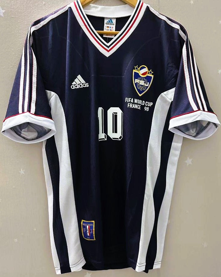 Rivivi il mondiale di Francia '98 grazie alla maglia della Jugoslavia con il numero 10 di DRAGAN STOJKOVIC. Realizzata per il biennio 1998-99 e arricchita dalla scritta celebrativa sotto lo stemma, omaggia la nazionale balcanica e il suo talentuoso capitano conosciuto per le sue grandi doti tecniche