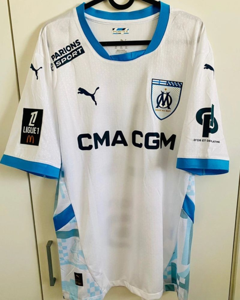 Tutto il fascino dell'Olimpique Marsiglia in questa maglia numero 25 di ADRIEN RABIOT della stagione 2024-25. Un vero gioiello arricchito dalla patch della Ligue 1, con la personalizzazione del forte giocatore francese per elevarne ulteriormente il prestigio