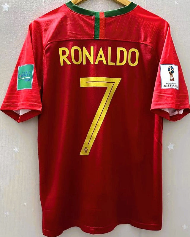 Rivivi la storia e la gloria del Portogallo con la maglia 2018-2019 indossata con il numero 7 da CRISTIANO RONALDO. Questo autentico capolavoro è la testimonianza del fenomenale portoghese, con le patch di Russia '18 su entrambe le maniche a elevare ulteriormente la bellezza di questa divisa