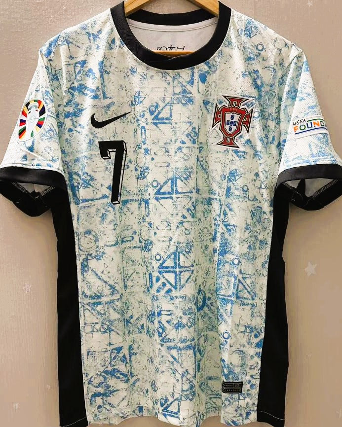 La maglia del Portogallo con il numero 7 di CRISTIANO RONALDO rappresenta al meglio la storia e la forza della nazionale portoghese. Arricchita su entrambe le maniche dalle patch di Euro '24, ha la personalizzazione del fuoriclasse lusitano ad aggiungere ulteriore prestigio ad una divisa straordinaria