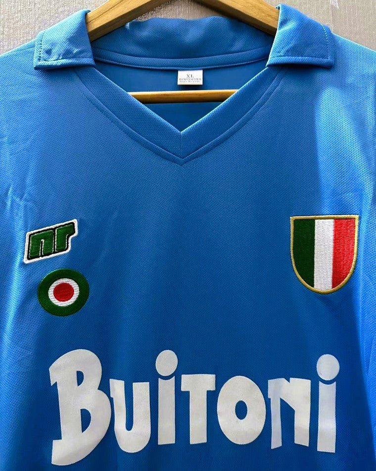 Welcome to the history of world football with a legendary jersey that still brings indelible emotions decades later: DIEGO ARMANDO MARADONA's number 10 shirt of the 1987-88 season of Napoli. An absolute gem with the Scudetto and the Italian Cup rosette on its chest, testifying to the supremacy of the partenopei led by the phenomenal and beloved "Pibe de oro"